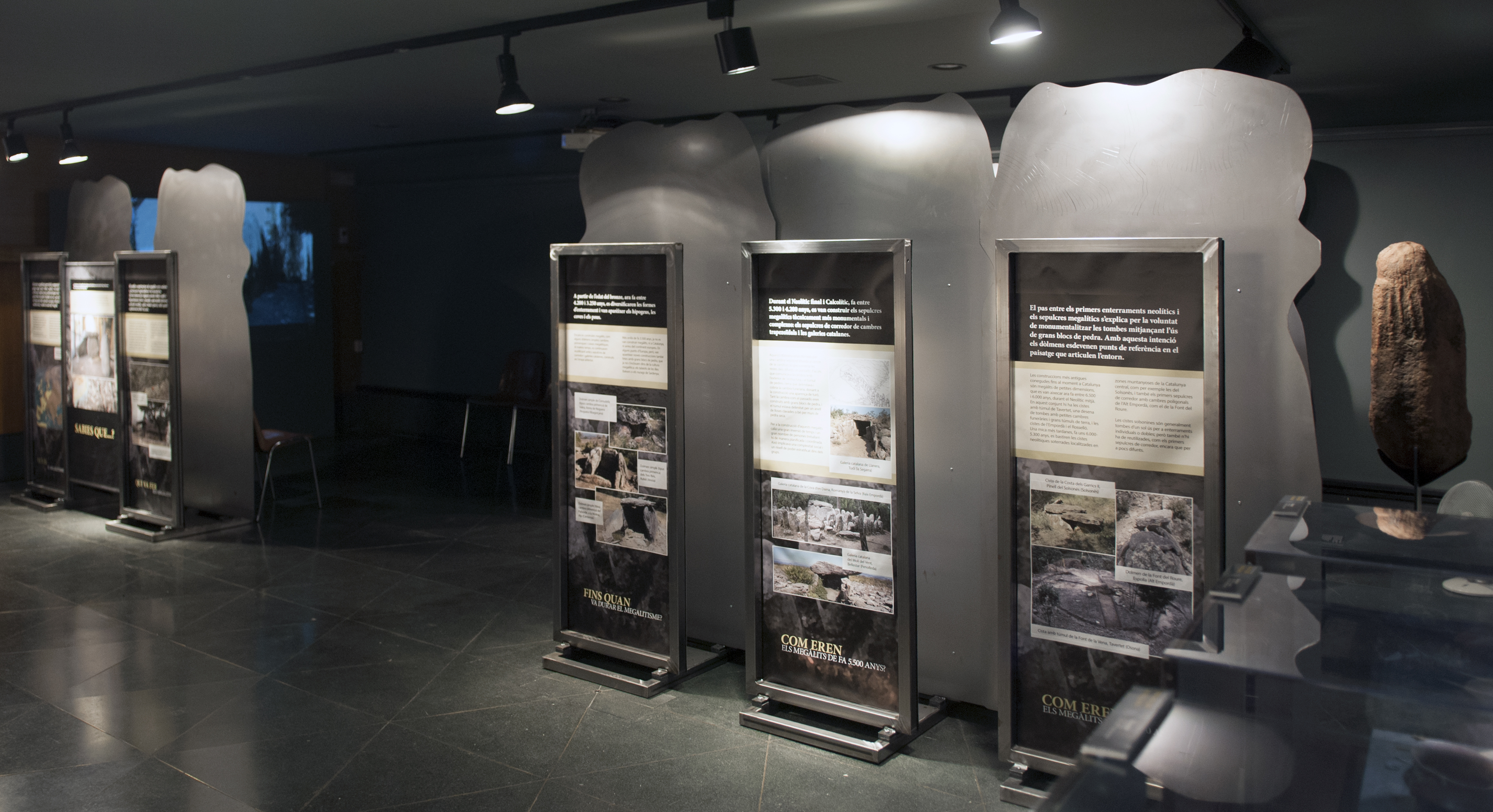 La muestra cuenta con varios plafones explicativos, así como diversas maquetas didácticas, la reproducción de una estatua-menhir y diferentes vídeos donde los máximos expertos en el tema nos aportan su visión sobre el fenómeno.